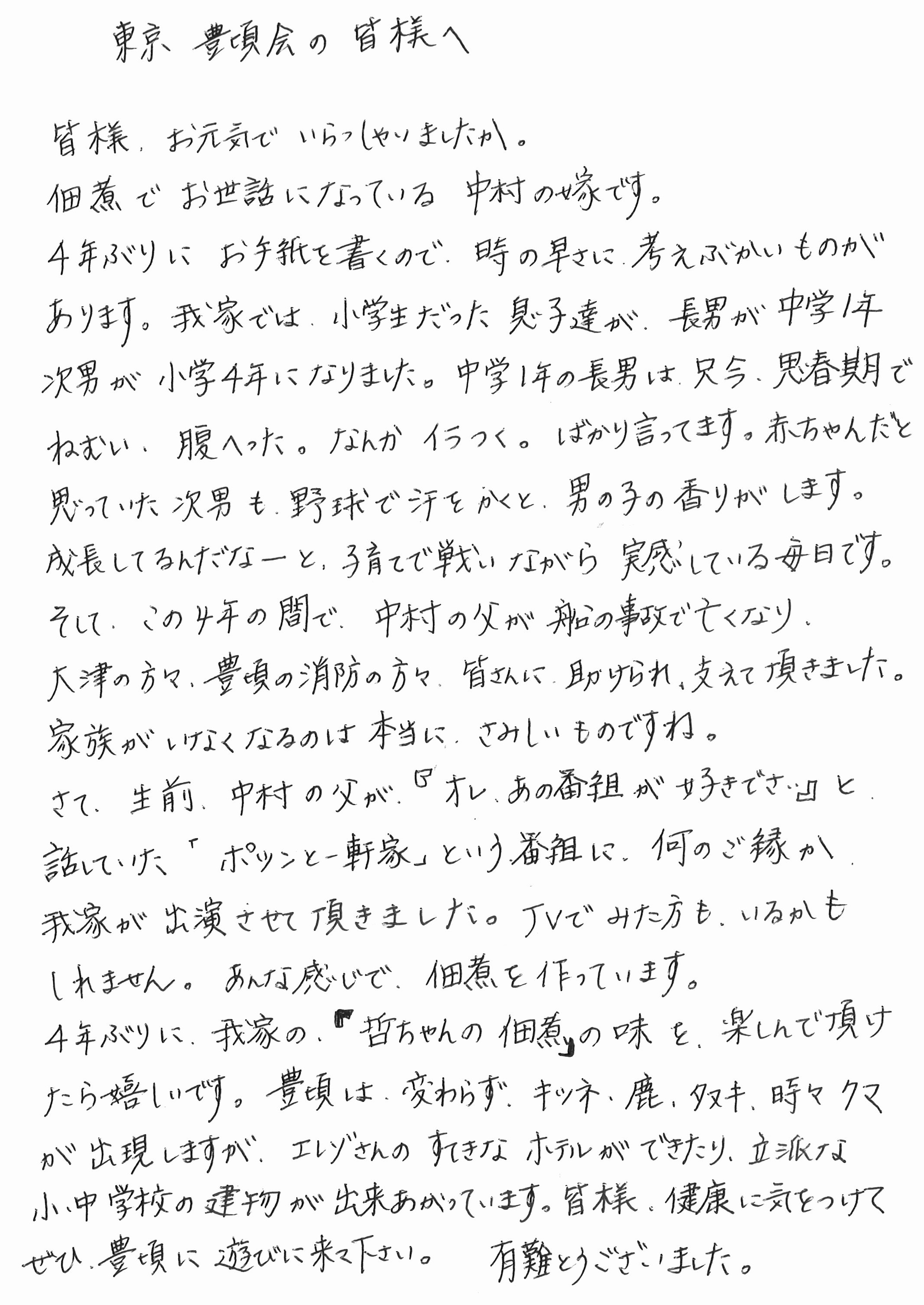 中村水産さんからの手紙